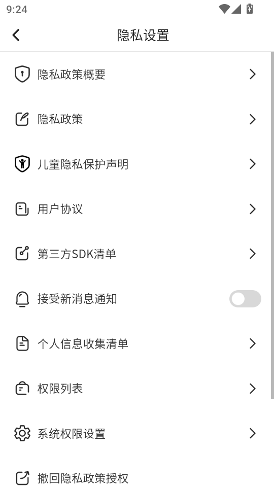 4.然后找到新菜单界面的“接受新消息通知”按钮,通过滑动开关就可以打开了