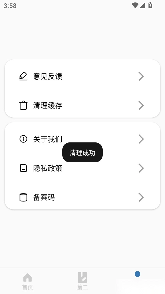 3.之后在“个人”功能菜单界面,点击“清理缓存”按键进入下一步