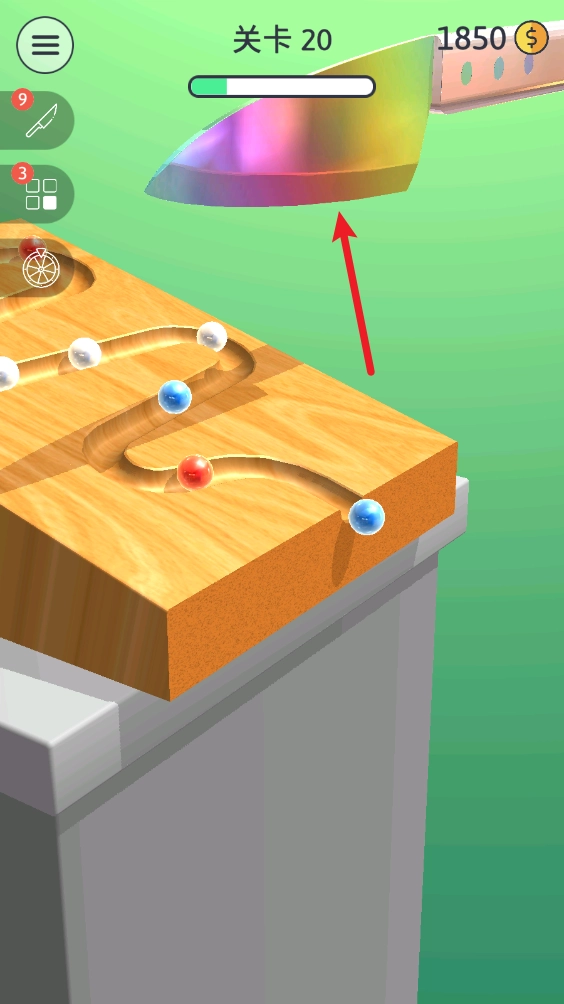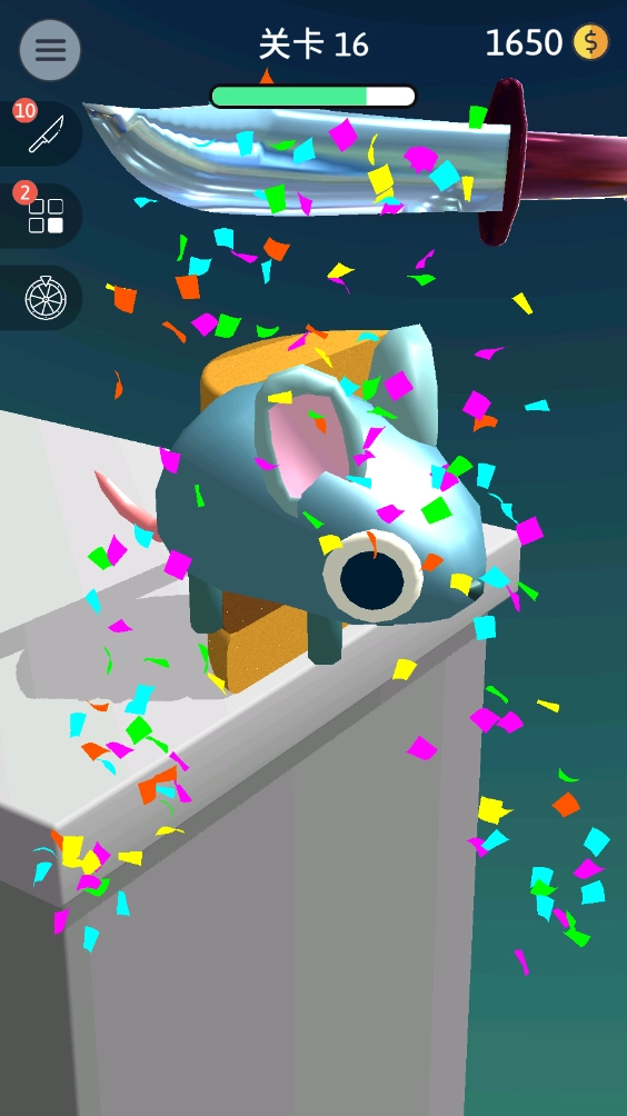 7、在关卡内,我们能够点击左上角的小刀图标,从而进入商店。在商店里,可购买各类刀具并进行更换。