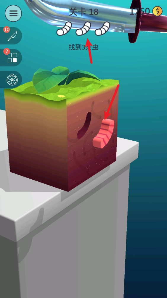 5、此关卡需要借助切割的方式,找出隐藏其中的虫子。