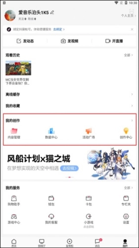 3、进入用户中心后,选择其中的“我的创作”,如下图所示。