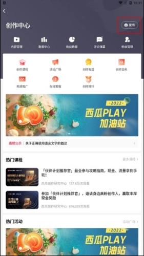 4、进入写作管理中心后,点击右上角的“发布”,即可发布视频,如下图所示。