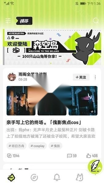 1、打开森空岛,进入主界面,可看到玩家们分享的游戏资讯和游戏攻略,