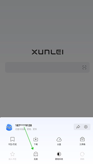 1. 开启迅雷浏览器App,进入应用之后,点击底部的菜单图标。