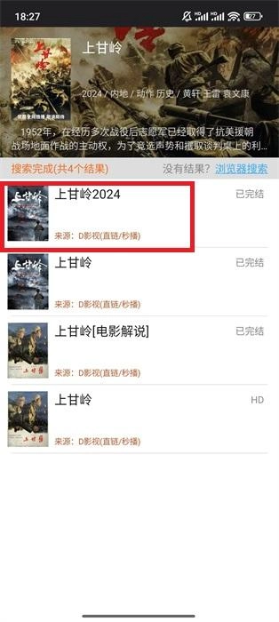 在搜索资源的界面中,系统会呈现出搜索结果,你只需点击自己想观看的那一项结果,就能进入对应的播放界面。