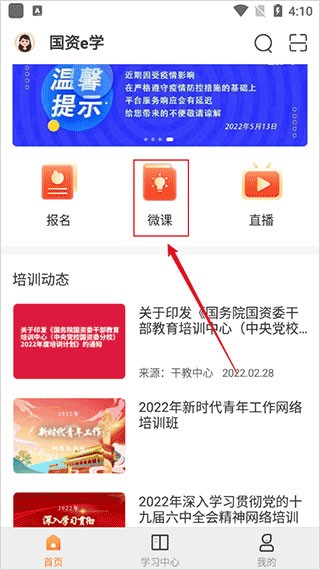 1、下载后打开app,点击首页中的微课