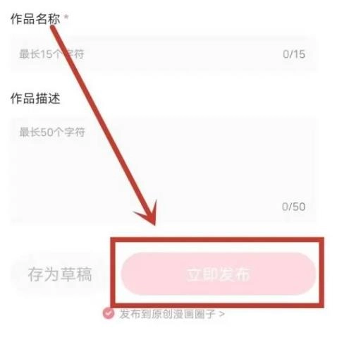 4. 把我的漫画作品进行上传,填写名称以及描述内容,接着点击立即发布。