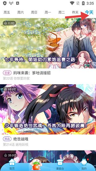 2、漫画台更新页汇聚多样漫画,每日更新不停,像七年等待萌娃助力等题材丰富,标注人气数据,清晰呈现最新话内容,方便用户追更喜爱的作品,紧跟连载节奏。