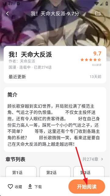 3. 轻点屏幕就能唤起功能页。要是您对本作品感兴趣,点击阅读页面上方的心形图标,就可以把它添加到书架(不过添加到书架这个功能需要先登录哦)。
