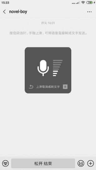 2、切换成语音按钮,按住说话键,语音会自动播放,播放完成放开手指就发送成功啦!