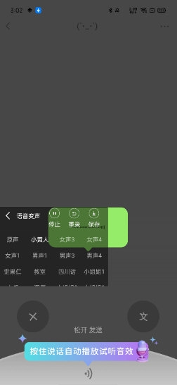 4、试听满意后,点击播放倒计时开始,打开应用语音功能(如微信按住说话),播放停止后松开发送