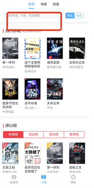 1、进入首页并点击输入框,输入关键词检索喜欢的小说资源
