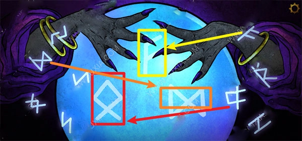2. 醒来之后,发现自己身处柜子之中。此时,径直朝着右边前行,便会遇到一位身着紫衣的女人。与之对话完毕后,把相应的符号挪动到魔法球上,随即进入如下情景:在红框标记的位置拿起金针。