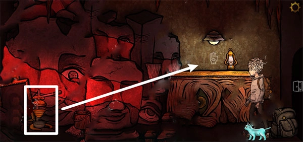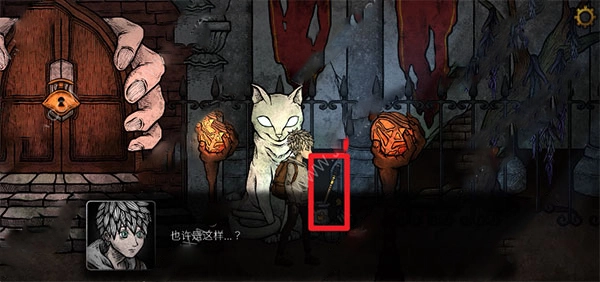 5、进入门后,径直往右前行。待剧情结束,把逗猫棒放进书包,接着继续往右走。留意手背上带有宝石的那根手指,在右侧会看到一个箱子。按照38421这个顺序点击,随后打开箱子,就能拿到红色种子。