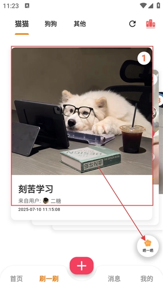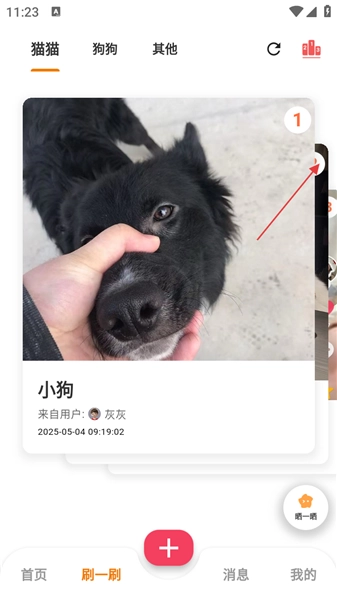 2、在【刷一刷】页,左右滑动浏览萌宠内容。