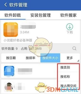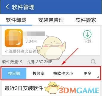 2、您可以选择【按日期】、【按频率】、【按软件大小】等分类查看方式。