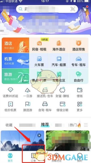 1. 打开去哪儿旅行手机客户端,在主页里点击“订单”选项。
