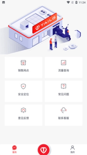 4、完成绑定后,即可点击服务,其中包含销售网点、安全定位、常见问题等服务内容。