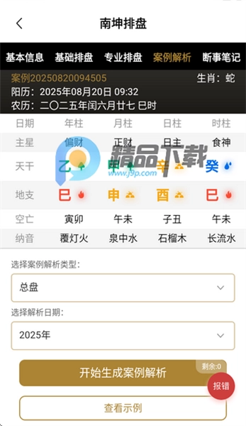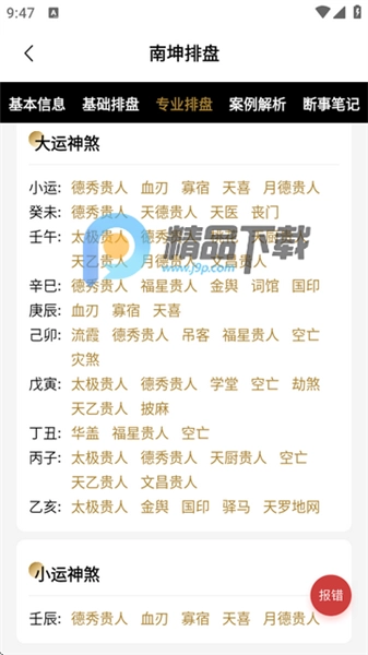 排盘信息被划分成基本信息、基础排盘、专业排盘、排盘报告等多种类型来进行展示。