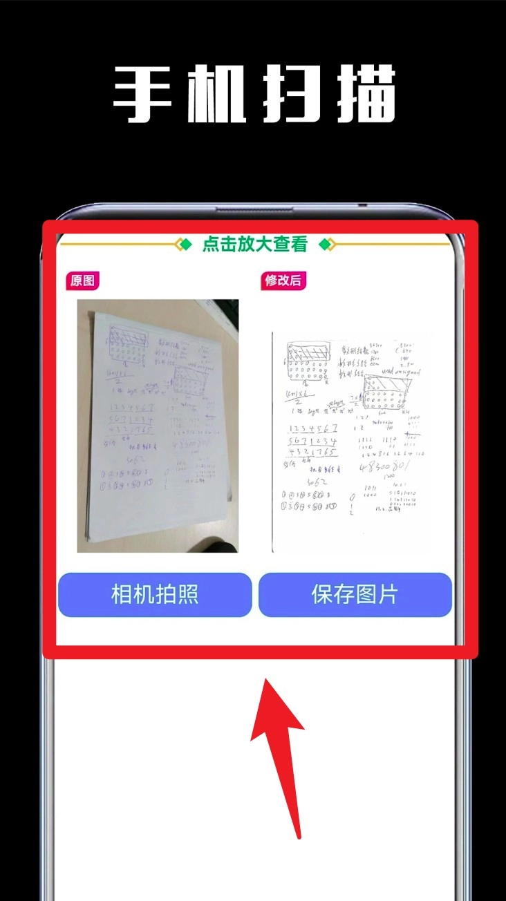 3. 系统会自动执行边缘识别以及手写内容处理操作,随即展示前后对比的效果图。当您点击保存按钮后,就能把清理完毕的试卷保存至本地。