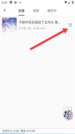 2、于音频列表里,找出需删除的音频,点击该音频右侧的垃圾箱图标。