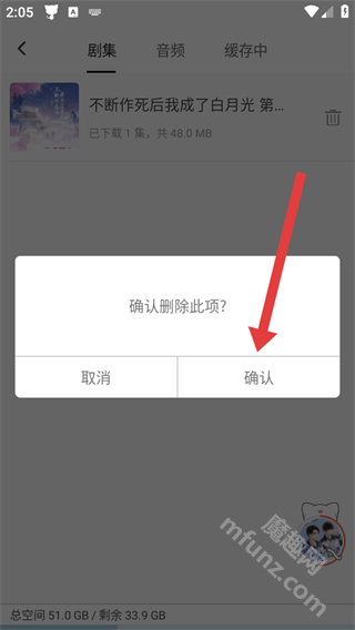 3、当弹出确认删除此项的窗口时,点击确认,就能删除该音频。