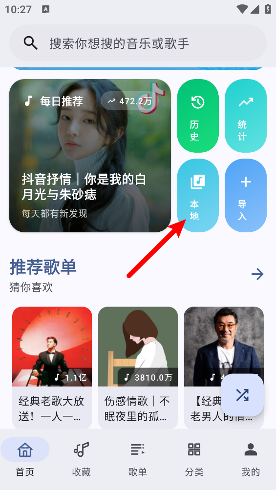 2、进入首页点击"本地"按钮。