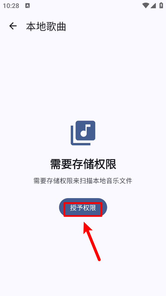 3、接着点击“授予权限”,此操作需要获取存储权限,以便扫描本地音乐文件。