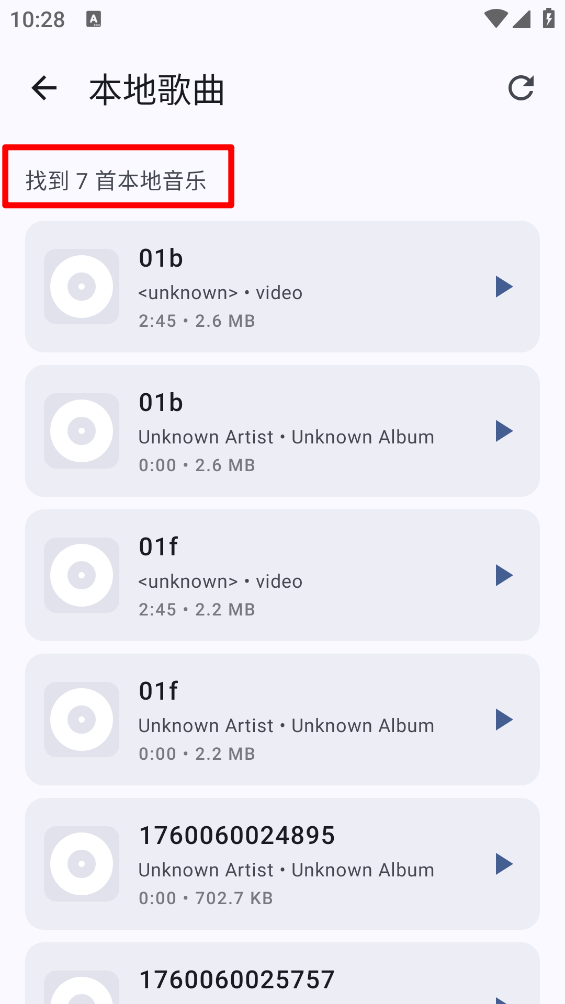 4、完成会自动扫描本地的歌曲。