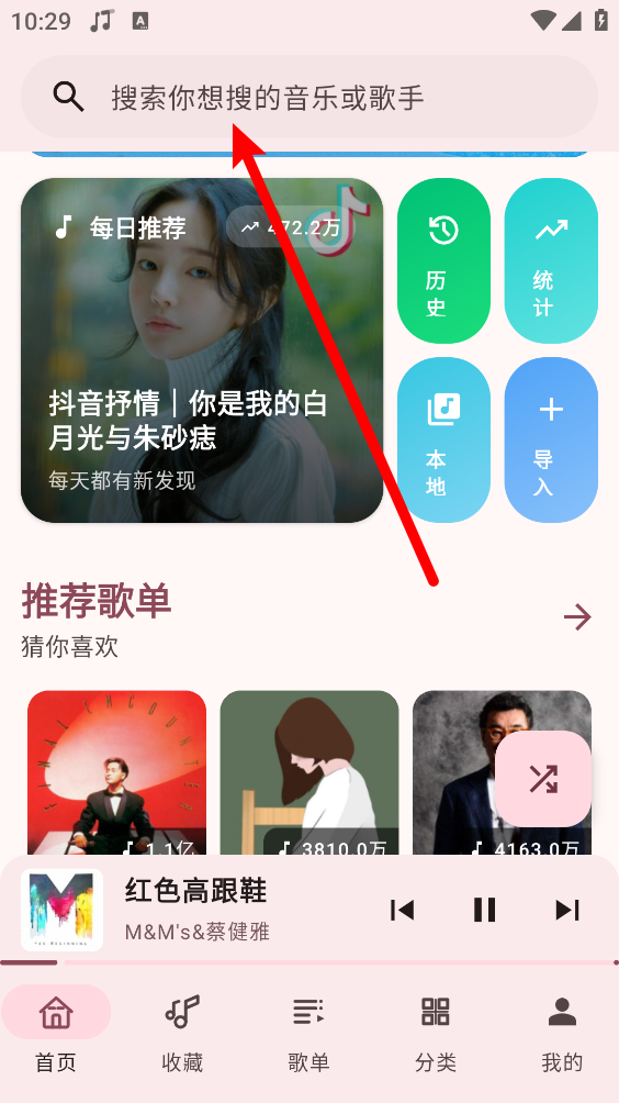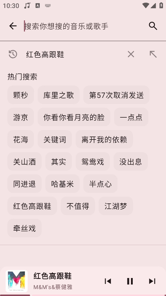 2、如图,输入音乐或歌手进行搜索喜欢的歌曲。