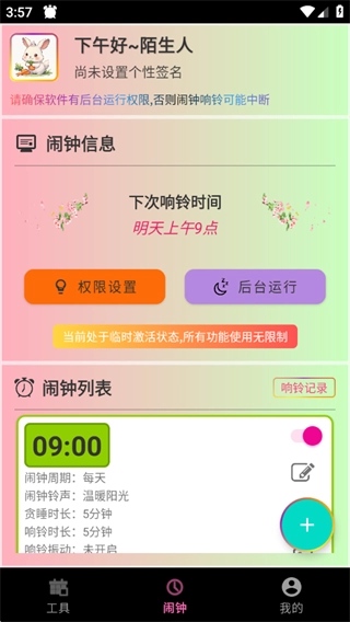 2、支持个性化闹钟定制,具备后台持续运行能力,无需网络即可使用。