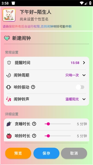1、突破传统闹钟单一功能模式,提供多维度自定义设置,满足起床、作息、备忘等多样化场景需求。