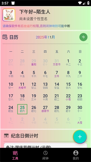 4、时间管理工具集成日历查询、倒数日记录及精准倒计时功能。