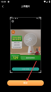 3、进入上传图片页面后,挑选我们想要查找的商品图片进行上传,随后点击【确定】按钮。