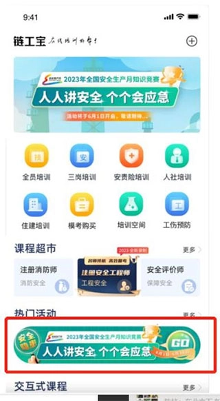 2、打开后,在首页点击“2023年全国安全生产月知识竞赛”的胶囊样式图片(见下方图示),即可进入报名流程,该流程分为三个步骤: