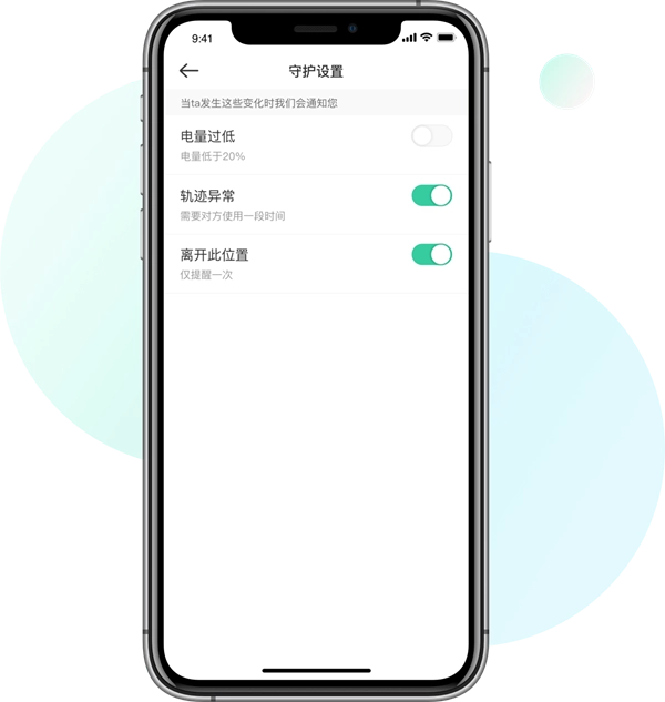 3)守护设置,ta的手机没电了?位置有异常?离开某个地方?时刻守护都会第一时间告诉您;