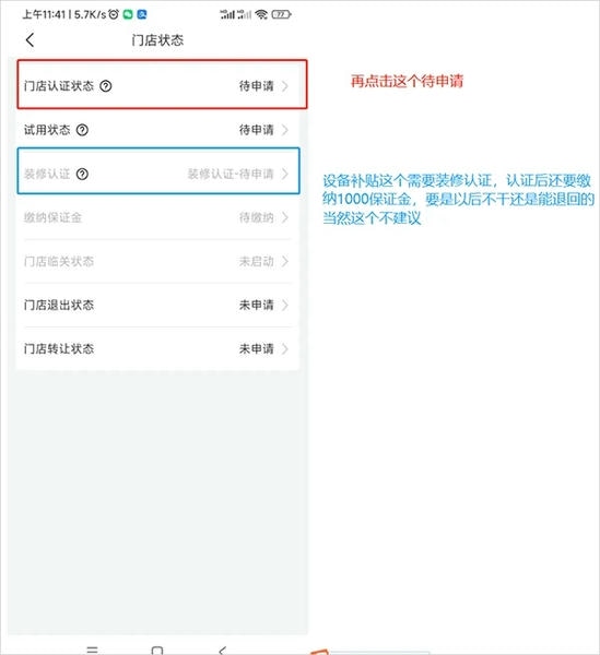 5、接着我们在【我的】界面门店状态,选择【待申请】选项;
