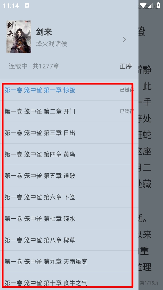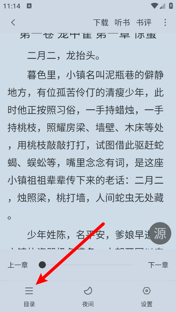 6、如图所示,点击即可查看目录。通过滑动操作选择对应的章节,就能进行阅读了。