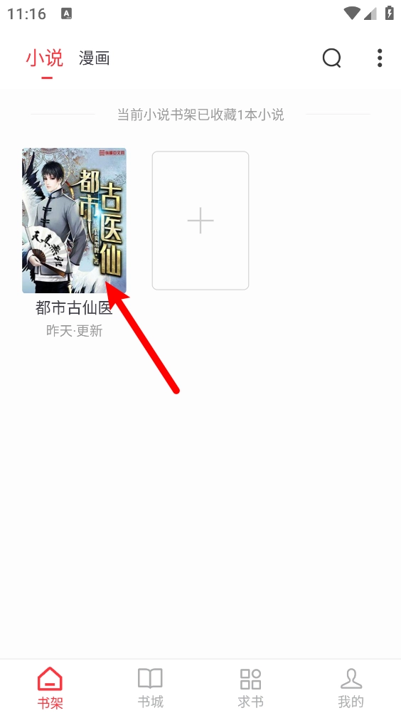 3、最后回到主页,在书架区域就能查看对应的小说资源了。