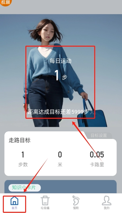 1、打开软件进入首页,即可查看每日步数,包括当前步数、目标完成度以及趋势图表,从而全面了解日常运动情况。