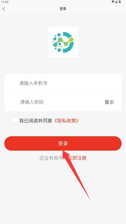2、于登录页面填写手机号与登录密码,勾选同意相关条款后,点击登录按钮即可进入应用。