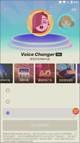 voicechanger vip是一款功能强大的声音转换软件,已完成VIP权限解锁,用户在这里能享受到完美体验,所有功能均可免费使用。软件丰富多样的功能,可直接帮你改变声音,涵盖呆萌、萝莉、御姐、方言、正太、影视等多种音效类型,轻松实现秒变女孩、大叔、机器人等声音效果,想变成什么声音都能满足。