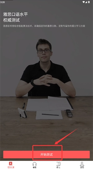 2、跳转至雅思口语测评页,点击“开始测试”按钮进入口语评估环节。