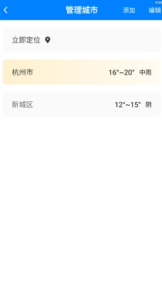 1、打开应用后,可通过允许位置权限或手动添加关注城市这两种方式,让主界面呈现出你所在地的实时天气与温度信息。