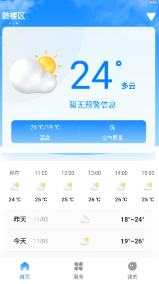 无忧天气是由深圳奇酷互联网络科技有限公司研发的一款天气预报类生活服务软件。用户通过该软件能够查询多个地区的实时天气状况,还可以查看未来至多15天的天气预报信息。软件会向用户提供温度、湿度、风力、空气质量等各类气象数据,方便用户随时查阅。其界面设计简约直观,让用户能够轻松上手操作。不仅如此,软件还具备节日与节气的提醒功能,十分贴心实用。