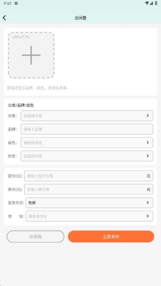 1、只需简单填写商品类型、所在城市、详细描述,再上传清晰图片,就能快速上架闲置物品,轻松开启二手交易之旅。