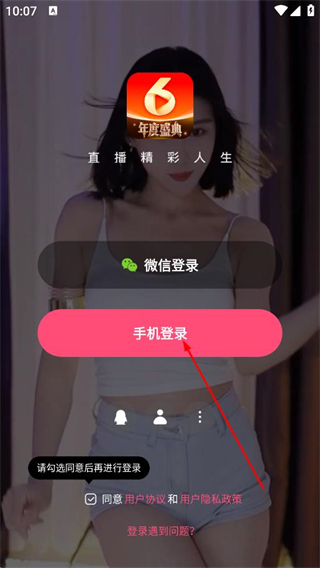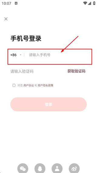 2、在登录选项页面,点击手机登录按钮,进入手机号登录界面。