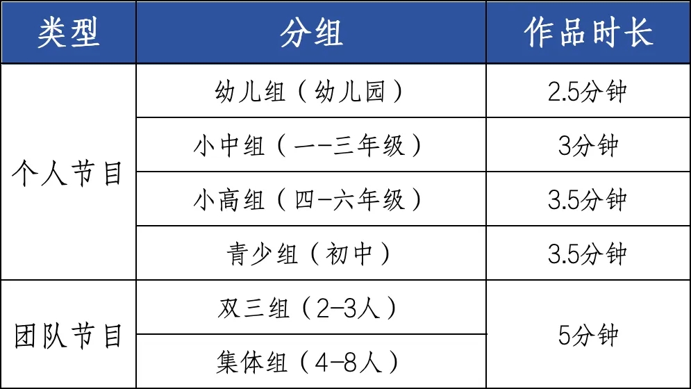 1.1 作品类型: 故事、诗词散文、课本剧、主持、播报、讲解及评述等各类语言类形式均在允许范围内。