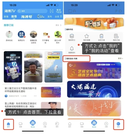 第2步:登录【海博TV】完成用户注册,进入右下角“我的”页面,通过“我的活动”列表查询活动主题(如图)。