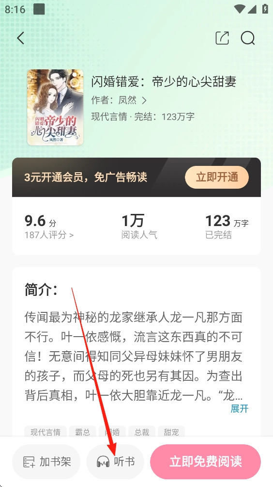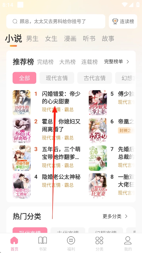 1、打开连尚读书女生版软件,选择要阅读的书籍